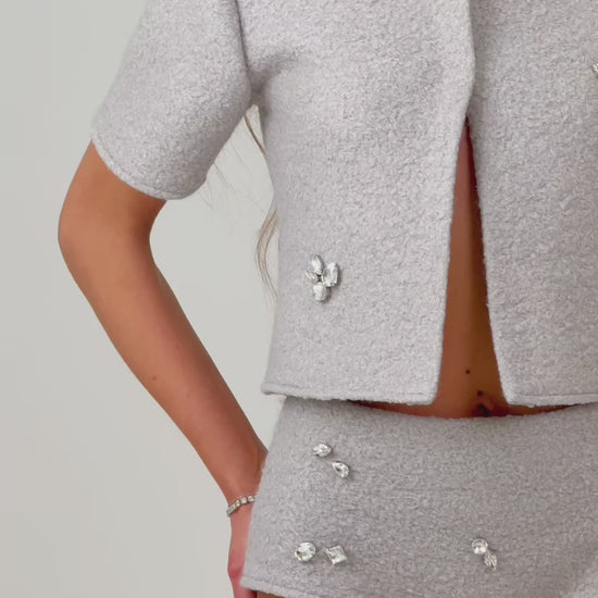 Wool Gem-Embellished Cardigan & matching micro shorts