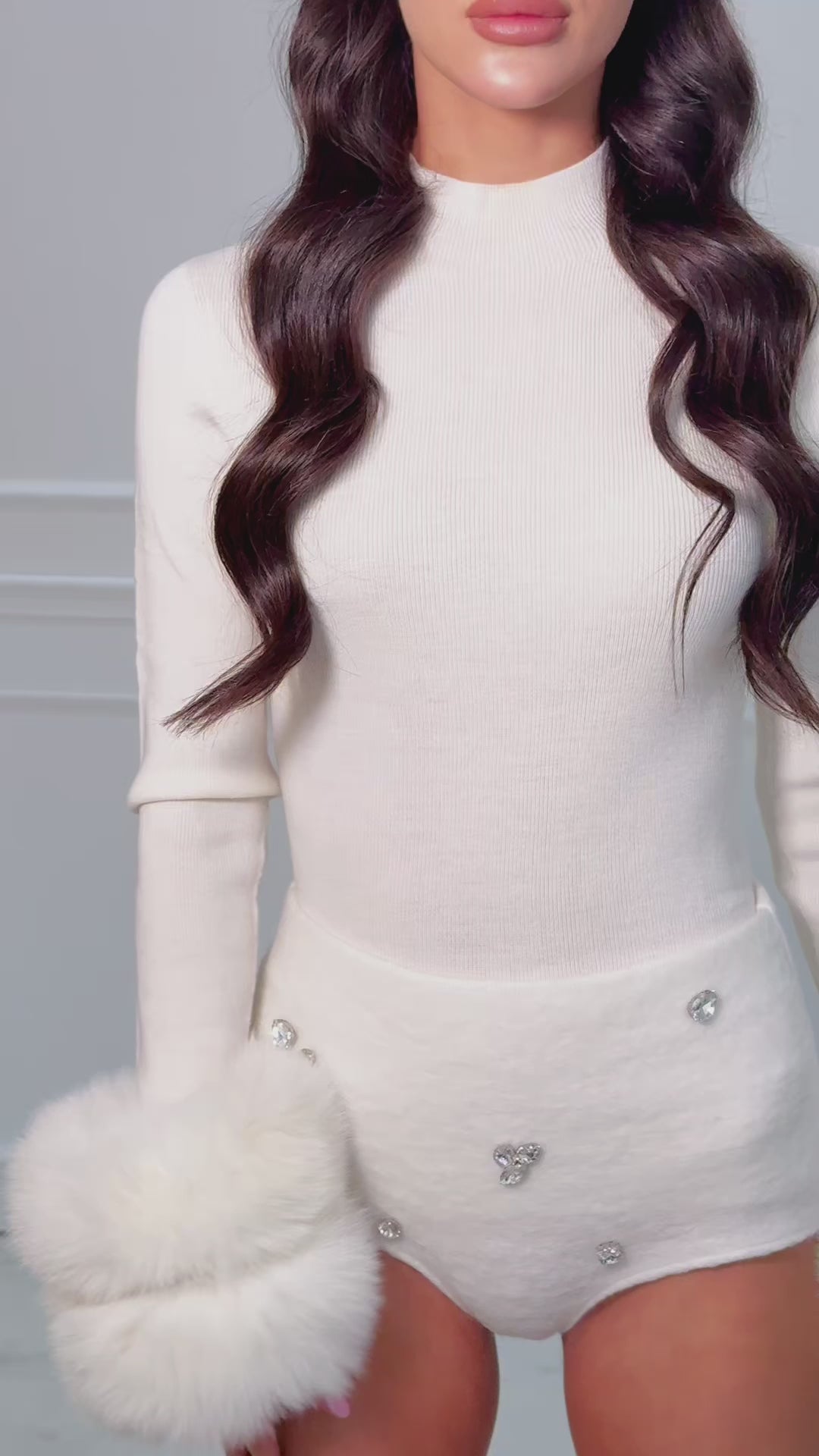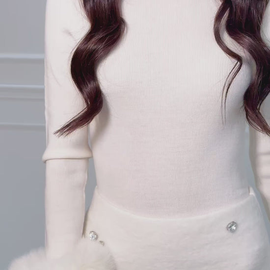 Our cashmere sweater with detachable fox fur cuffs is the ultimate winter statement piece. Effortlessly versatile, it can be dressed up for an evening out or styled down for a cozy, chic look.