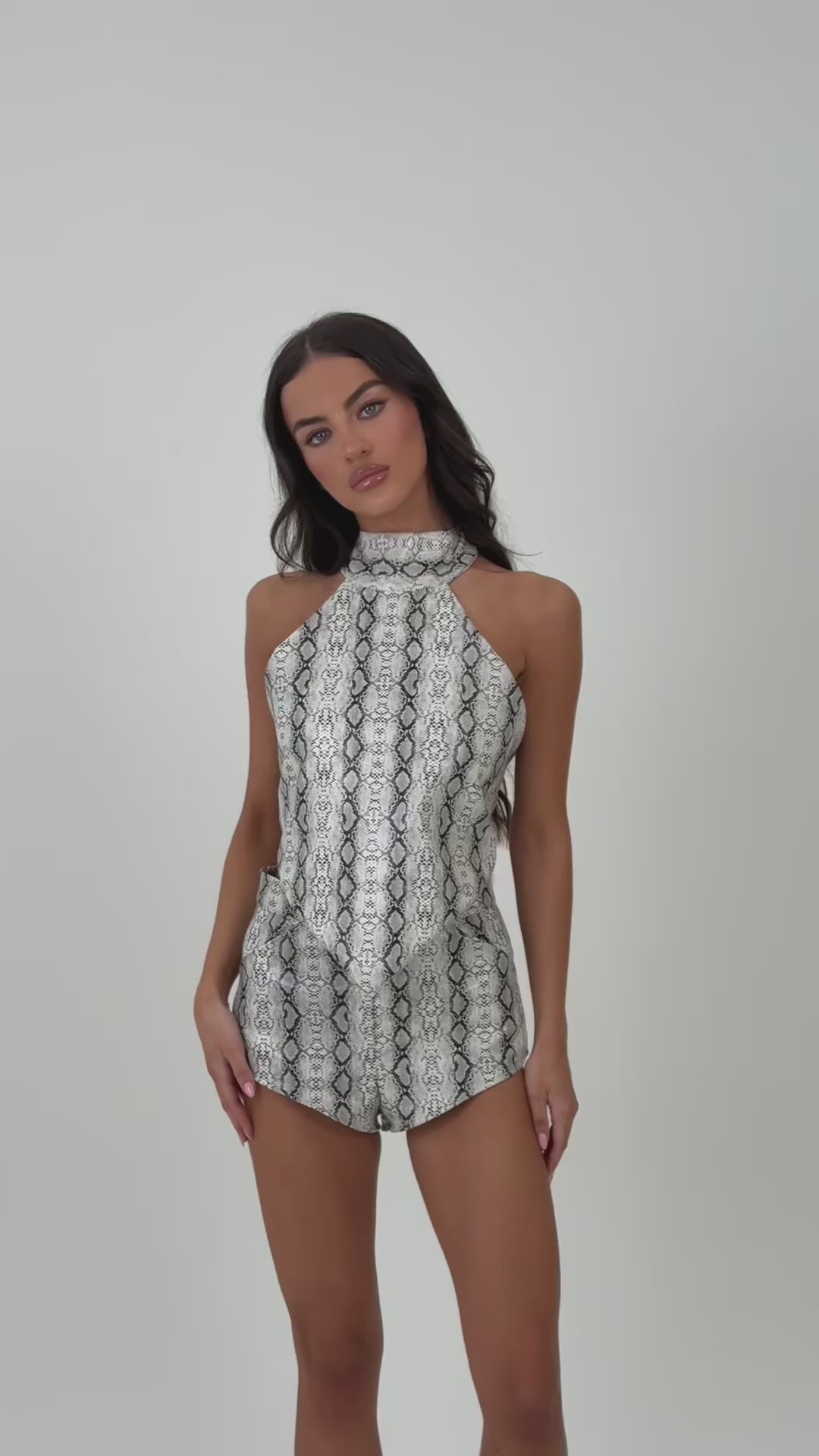 Step into your power with this daring snakeskin two-piece set, featuring a sculpted halter top and curve-hugging micro shorts. Designed for bold expression and ultimate edge, this co-ord set commands attention from every angle.